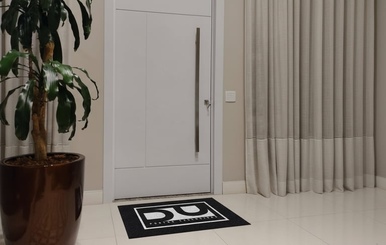 Porta em ACM com acabamento clean em tonalidade branca, estrutura reforçada em perfis metálicos e excelente estabilidade dimensional. Sistema de abertura convencional ou pivotante, com puxador linear em alumínio e opção de fechadura digital. Ideal para projetos que valorizam leveza estética, durabilidade e fácil manutenção.